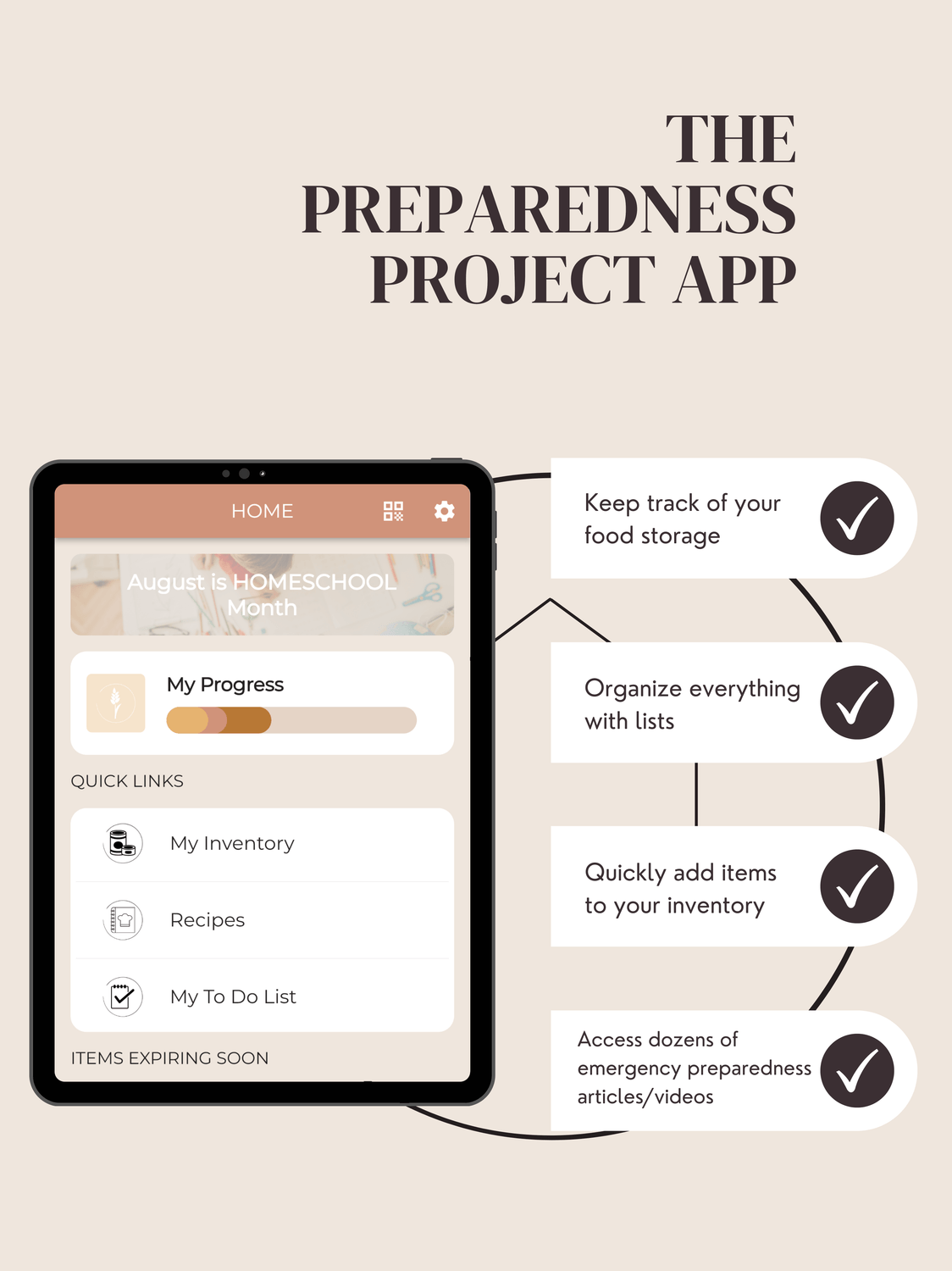 The FIRST app that lets you keep track of your food storage, water, and essentials in one place.